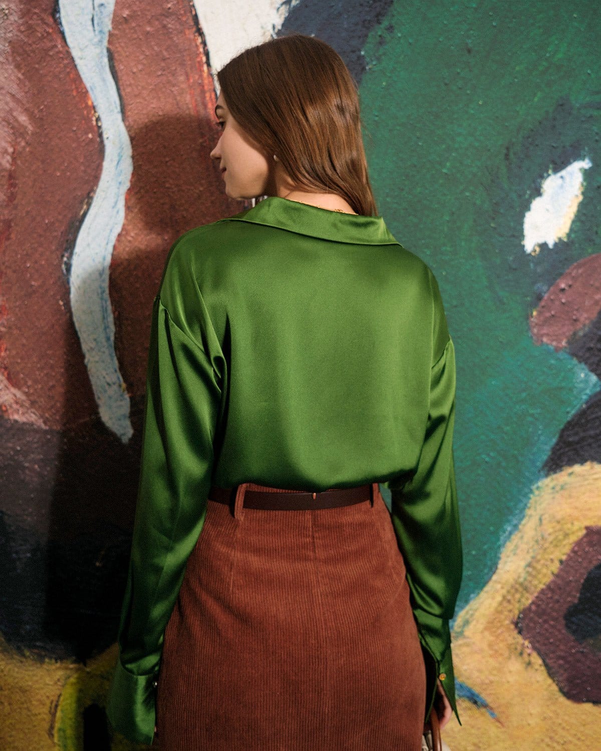If you’re looking for something not too clingy, this relaxed-fit solid blouse would be your good choice, minimalism yet cozy. Featuring satin fabric, it is endowed with a high degree of gloss and softness. The lapel and button-up follow the classic design, perfectly suiting all kinds of occasions and matches, whether for dating or workwear.