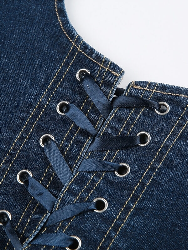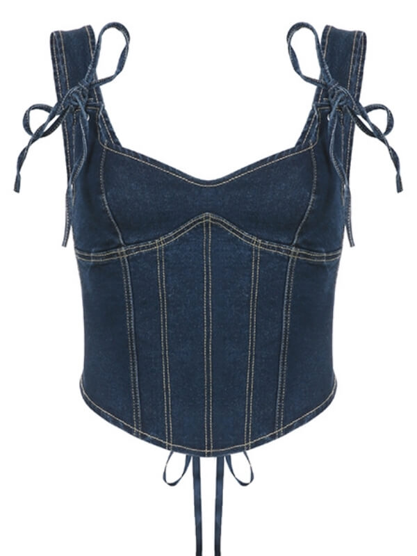 Elevate your style with our Denim Spicy Girl Camisole! This unique top features a lace-up back and an irregular pendulum design, accentuating your bodyline. Stay trendy and confident in this must-have piece.