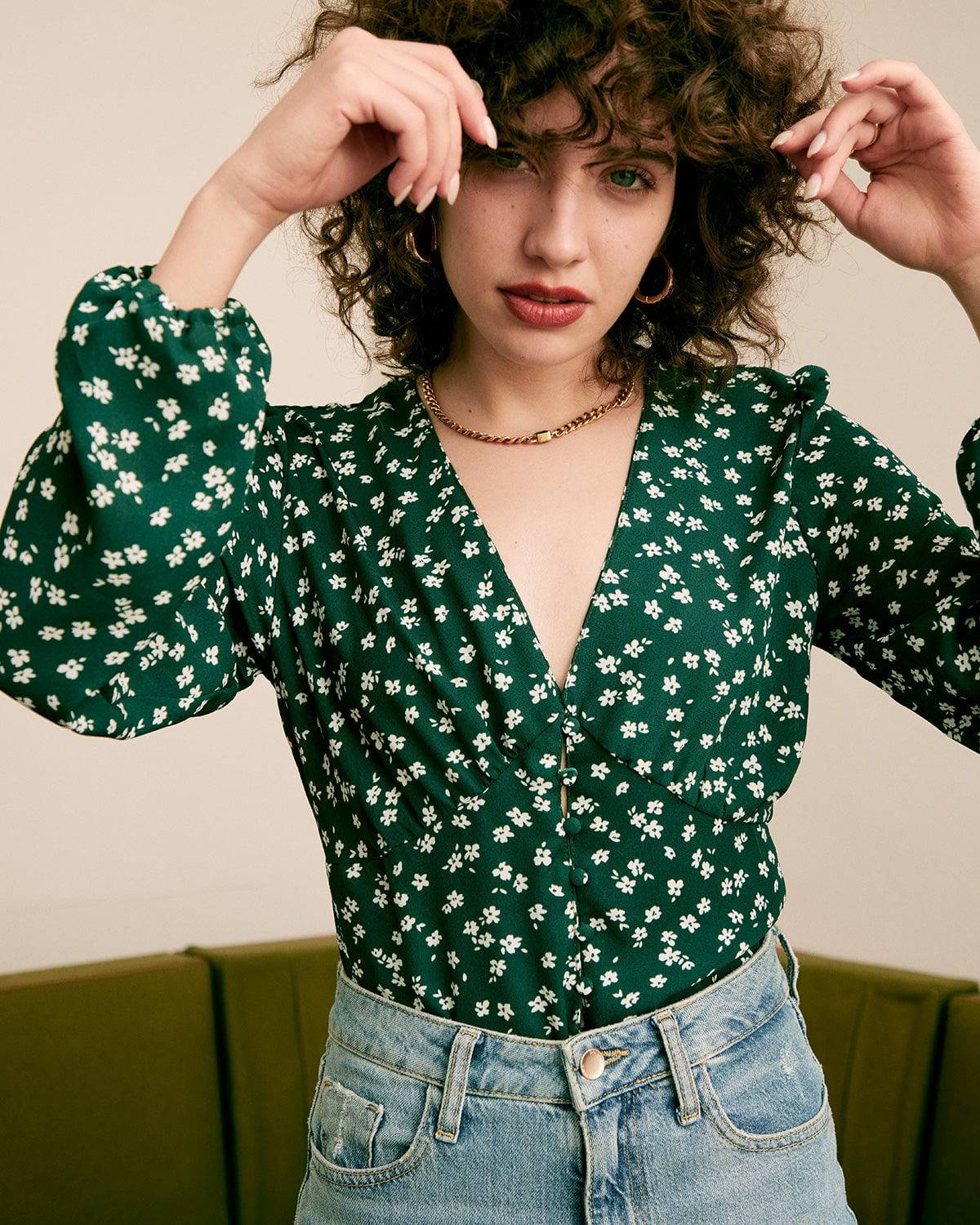 The V-Neck Floral Printed Blouse